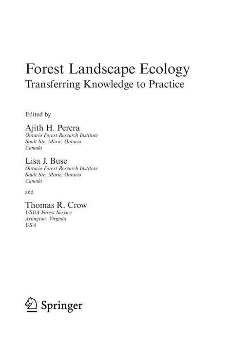 Read Online Forest Landscape Ecology Transferring Knowledge to Practice 1st Edition PDF